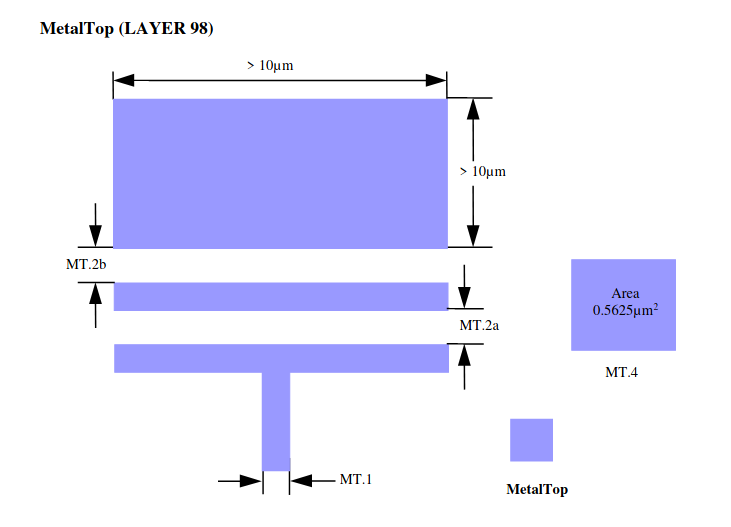 MetalTop coverage over the entire die shall be >30% (Refer to section 10.3 for Dummy Metal-fill guidelines. Customer needs to ensure enough dummy metal to satisfy Metaln coverage)  |