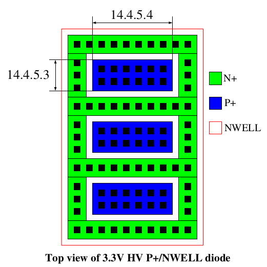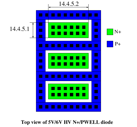 The following design guidelines are recommended for 5V/6V HV N+/PWELL diode for good ESD protection.